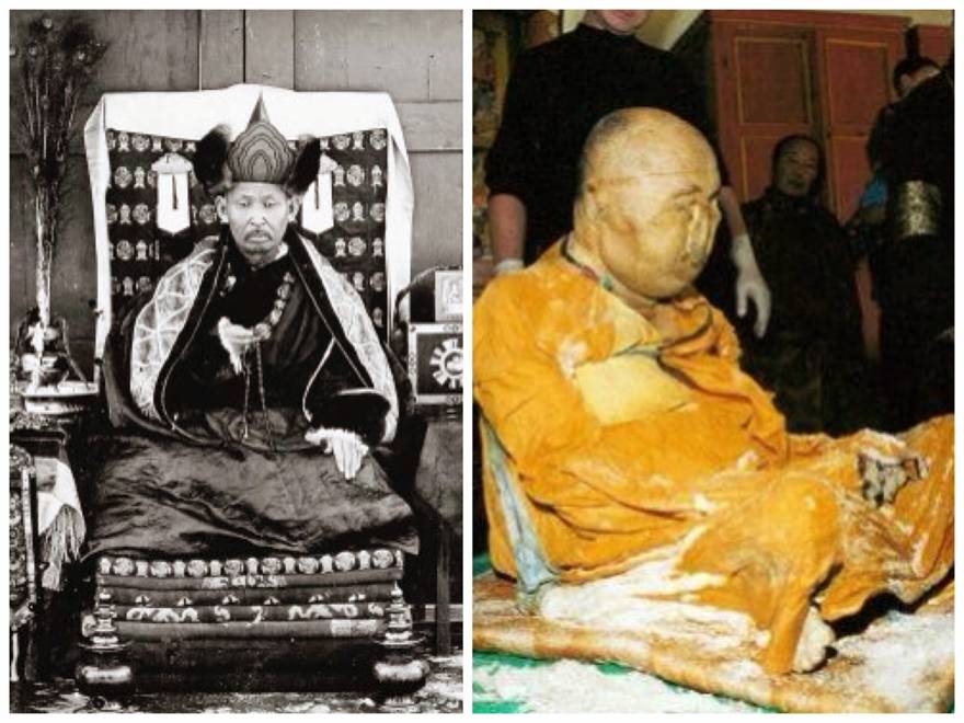 This info appeared in Russian mass media as regards buried Buryat Lama who was exhumed from the ground in the beginning of the 21 st century. The grave consisted of wooden box and Buddhist lama was sitting inside of it in ‘lotus’ pose. His body looked like it was mummified, however the opposite is true. His muscles and skin was soft, folding joints. Hambo Lama was clad in silk clothes and wrapped in fabric of same material.